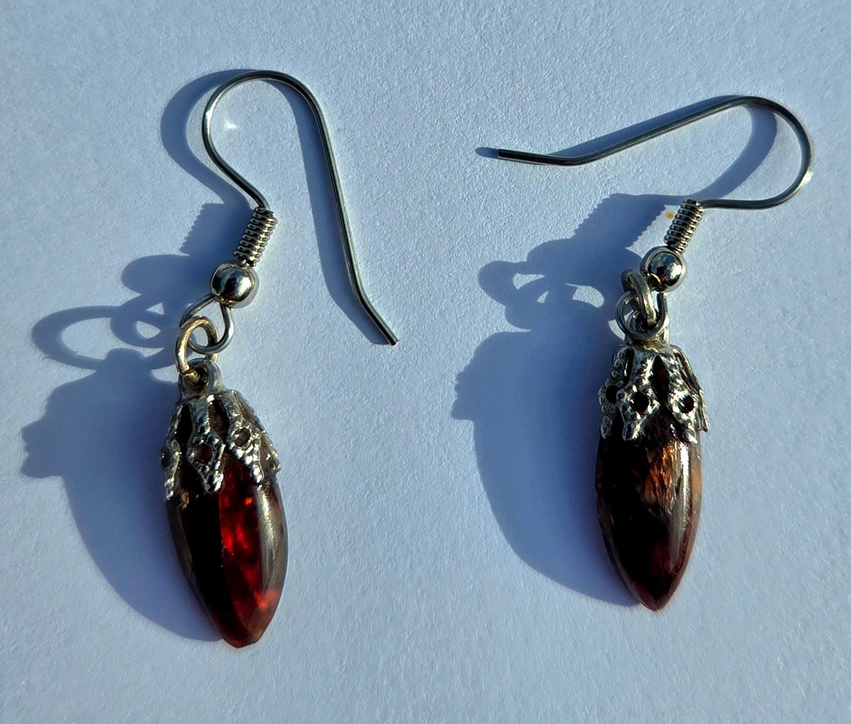Deep red almandine garnet metal earrings pair.