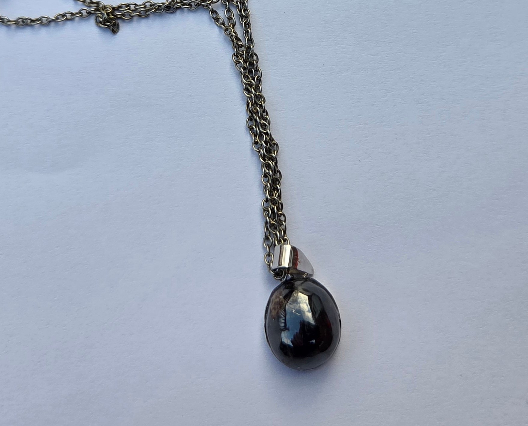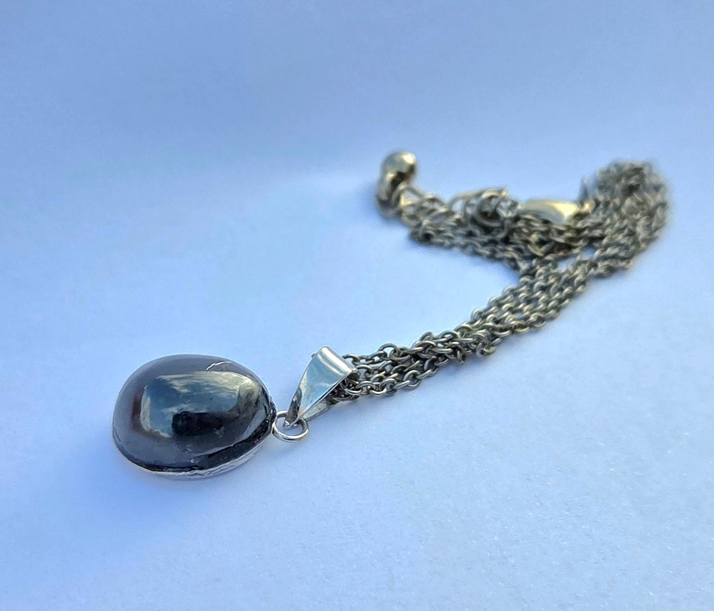 Hand polished sphalerite sterling silver oval bezel necklace.